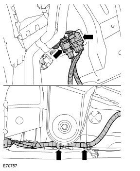 54. LH side rear: Disconnect the 2 body harness electrical connectors.