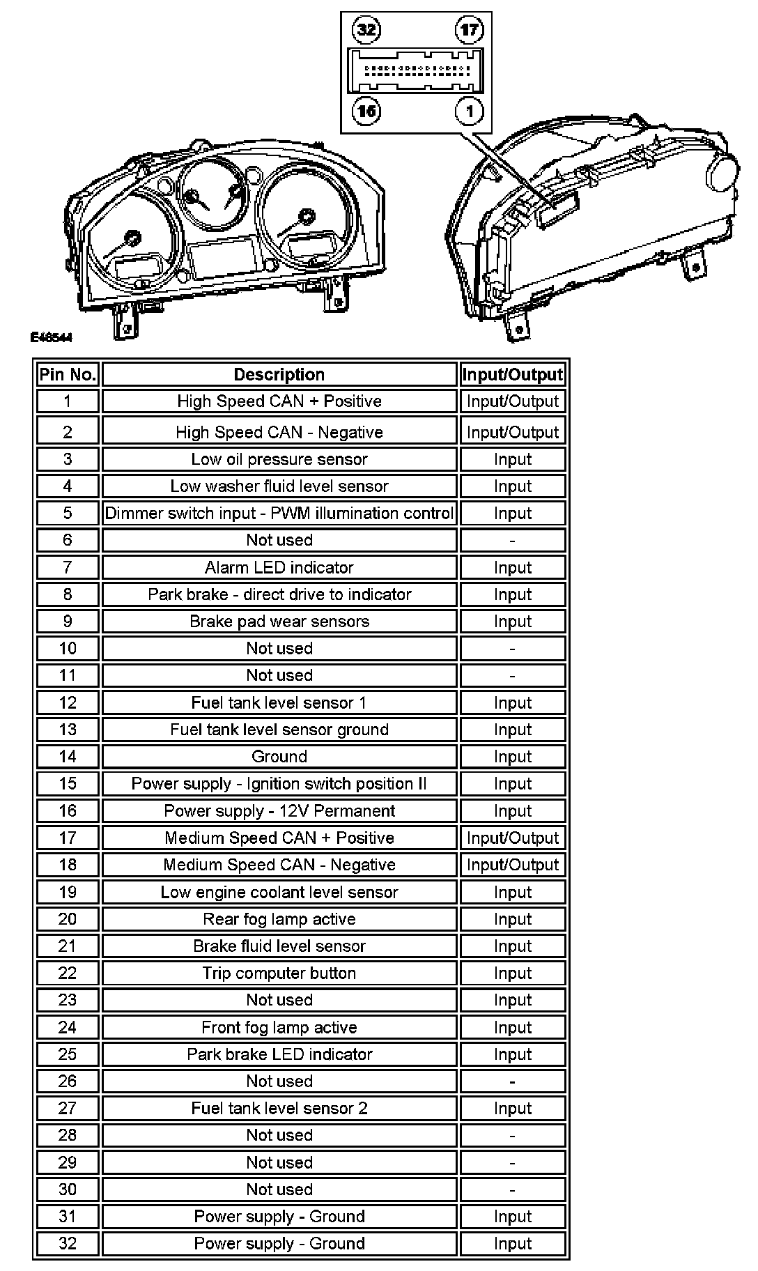 A single electrical harness connector provides all inputs and outputs to and from the instrument cluster.