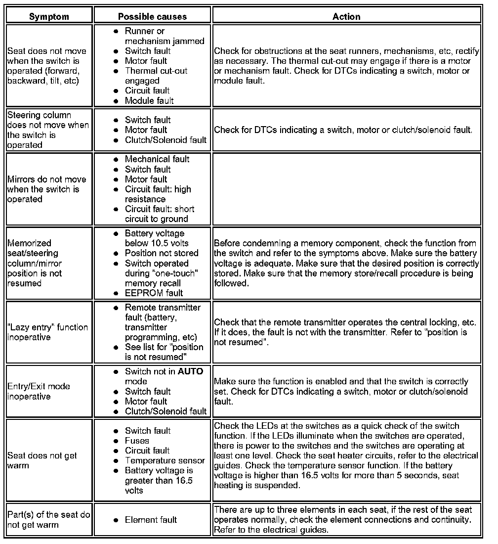 References to seat movement refer to either front seat.