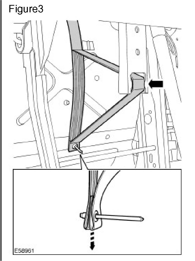 6. Verify that both of the strap end-loops are facing forward in the vehicle prior to attachment. (Insert Figure 3)
