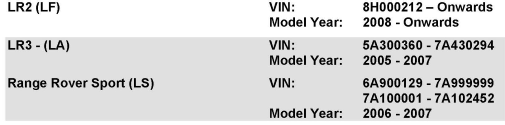 AFFECTED VEHICLE RANGE