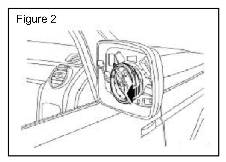 1. Refer to GTR Workshop Manual Section 501-09, and remove the passenger side door mirror glass.