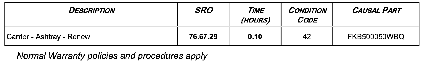 In the event of a customer concern of the above, refer to the Repair Procedure outlined below to replace the ashtray carrier only and not the complete ashtray.