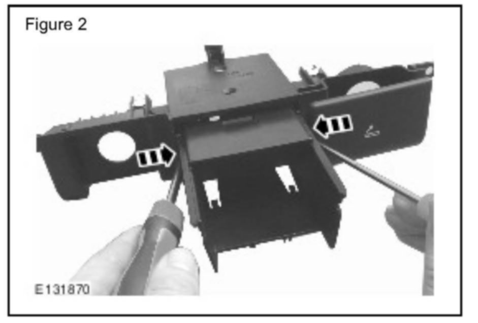 2. Using suitable tools, gently press against the ashtray carrier fixing clips and remove the ashtray carrier. (Figure 2)