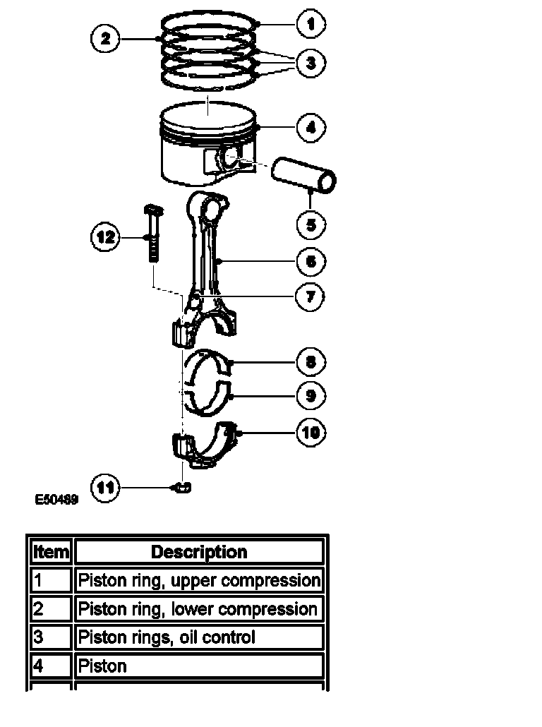 Each piston is fitted with two compression rings and an oil control ring. The top compression ring has a nitrided surface, a process that involves the diffusion of nitrogen into the surface layers of a low carbon steel. The formation of nitrides provides an increased hardness. The 2nd compression ring is chrome-plated. The oil control rings have stainless steel top and bottom rails and integral expander rings.