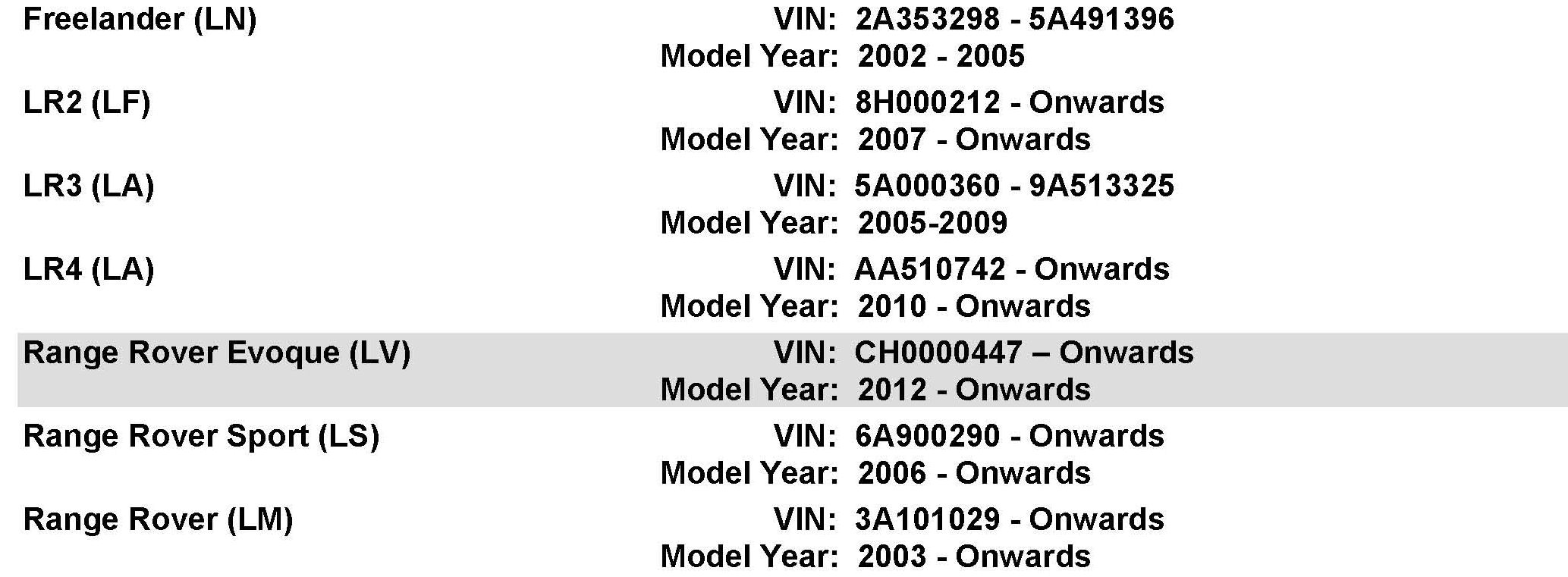 AFFECTED VEHICLE: