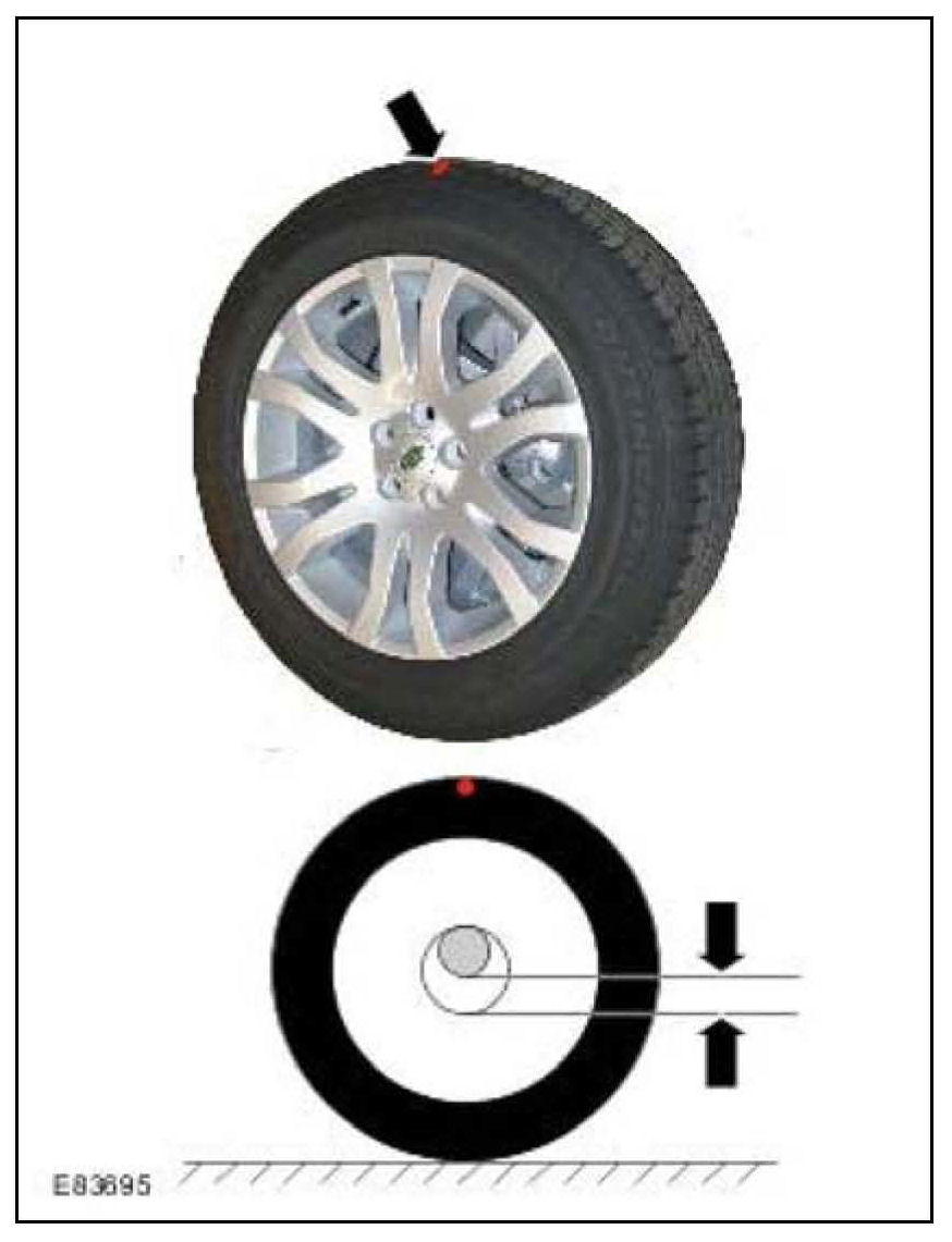 6. Prior to tightening the wheel nuts, the high-point of RFV should be marked and the road wheel / tire assembly installed to the vehicle with the RFV high point at the top.