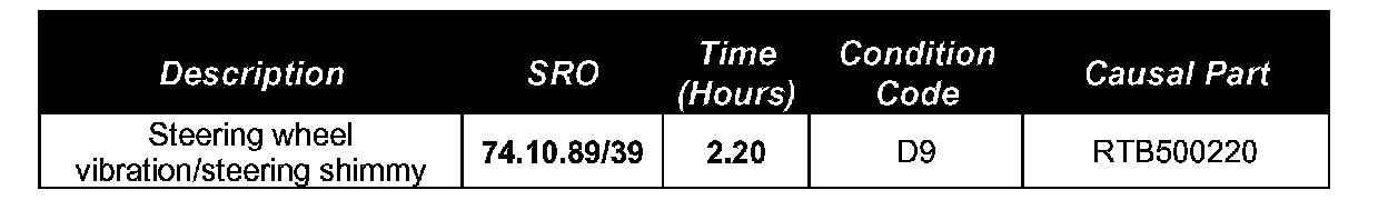 ^ Drive the vehicle for at least 15km (10 miles) before attempting to assess shimmy.