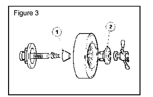 4. Refer to Figures 3, 4 and 5 for correct wheel fitting attachment to the balance machine and balance road wheel and tire assemblies until the residual imbalance dynamic is minimized.