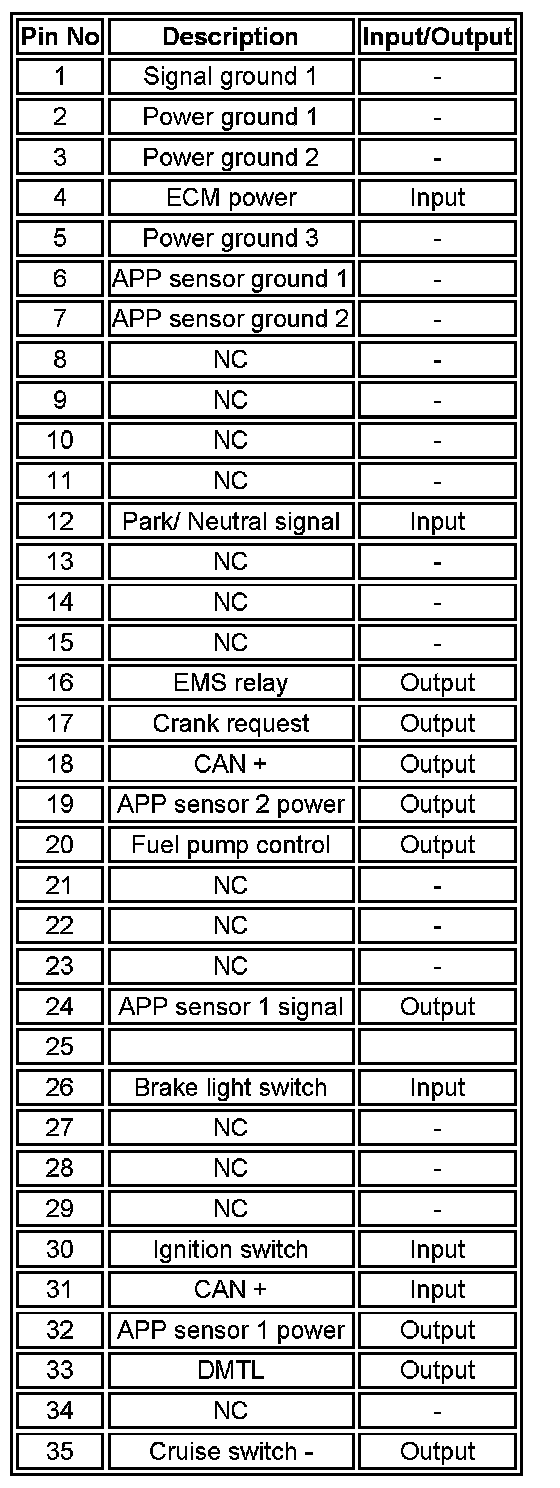 ECM Connector C0635 Pin Out Table