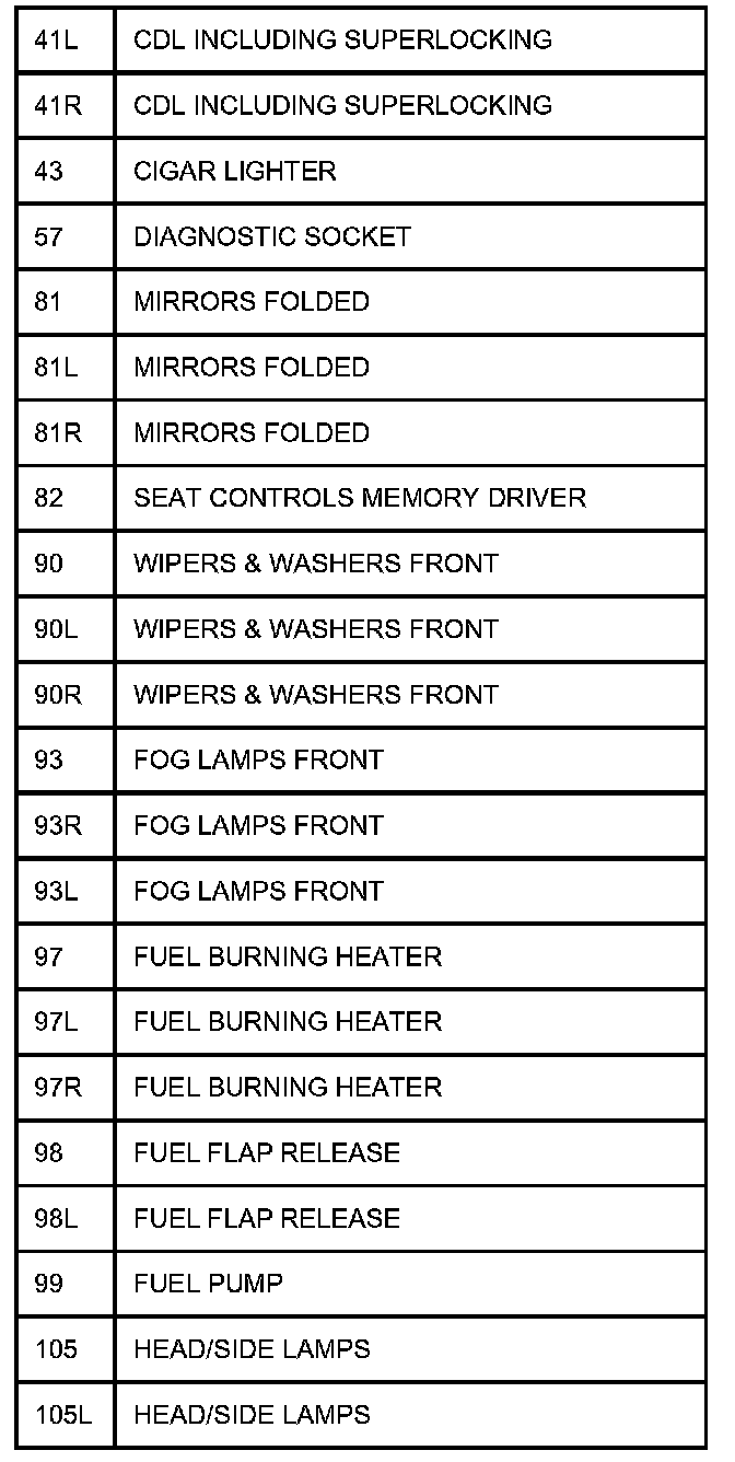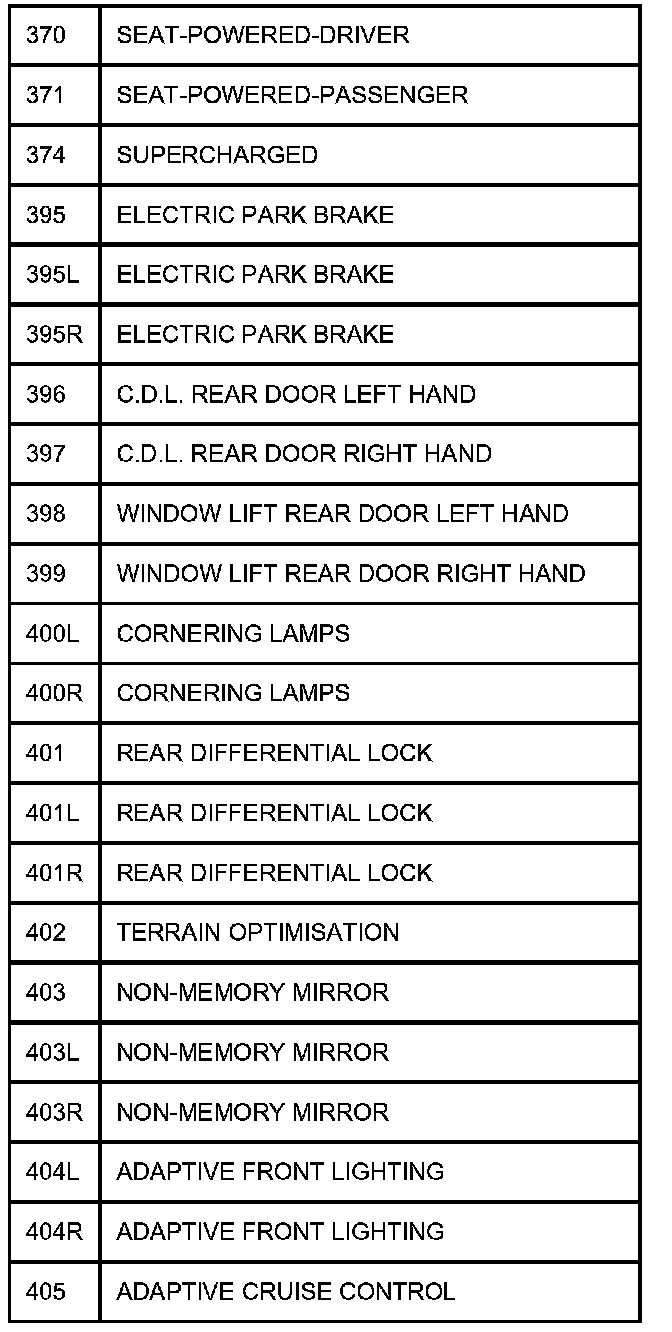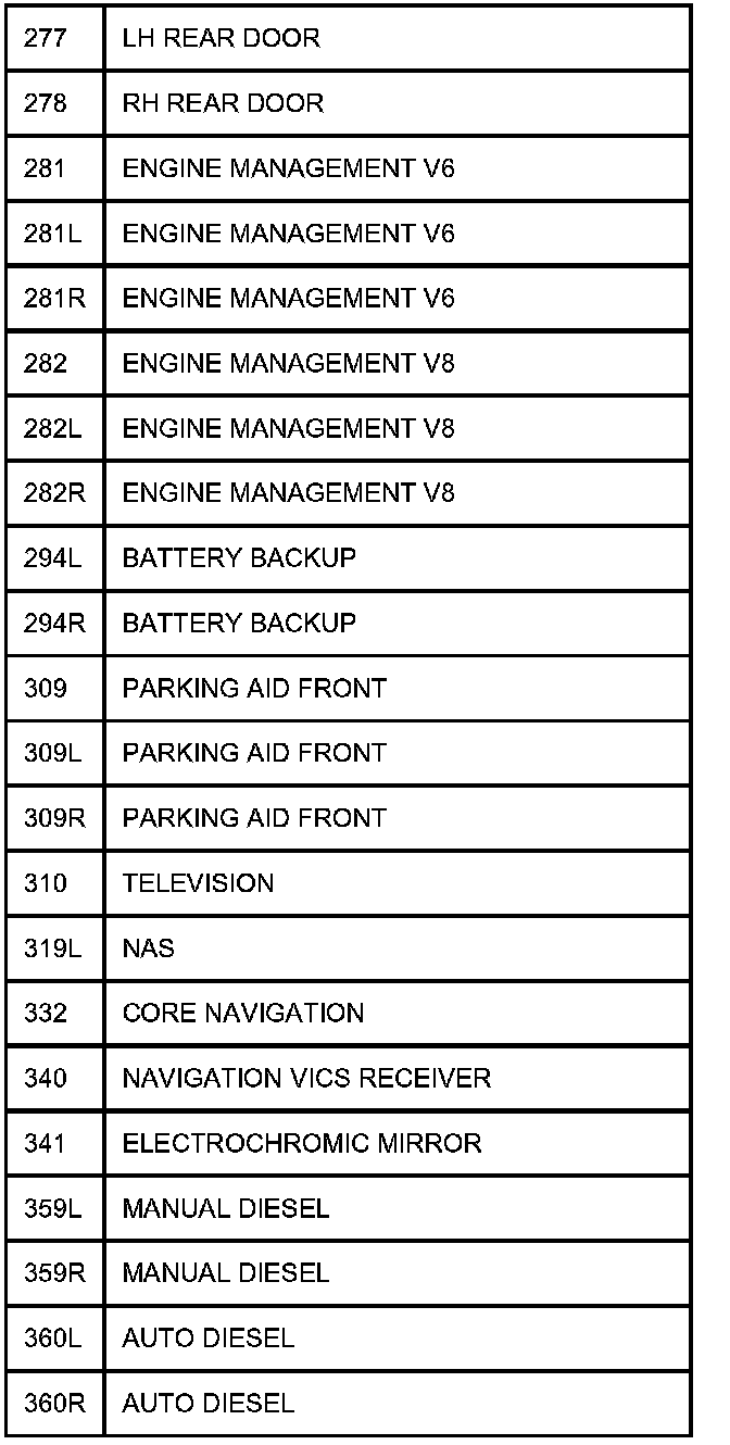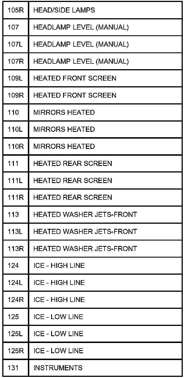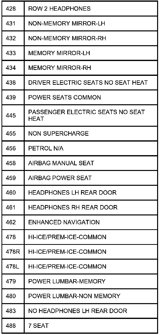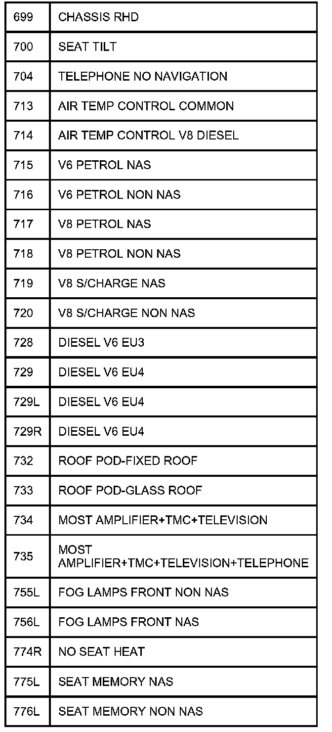 The following table contains a list of circuit (Cct) reference numbers against a description of the applicable model or option. This information should be used in conjunction with the connector pin-out tables to determine the wire configuration of the vehicle under test.