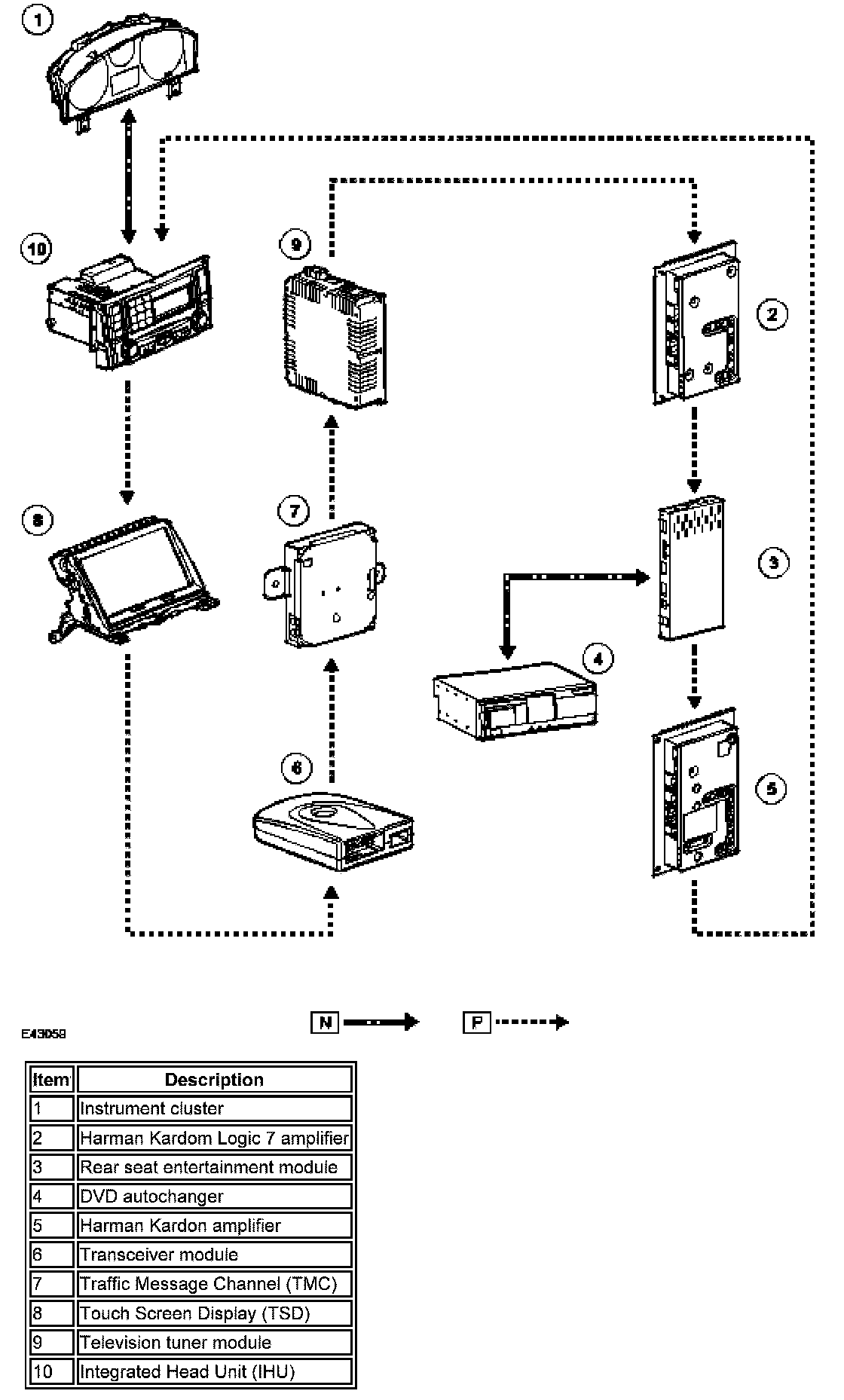 NOTE: D= HS CAN Bus P= MOST