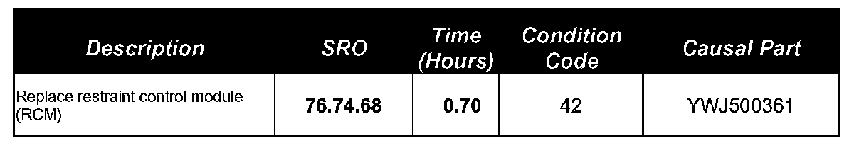 Should the above fault code be present in the restraint control module, refer to the Repair Procedure detailed in this bulletin to replace the module.