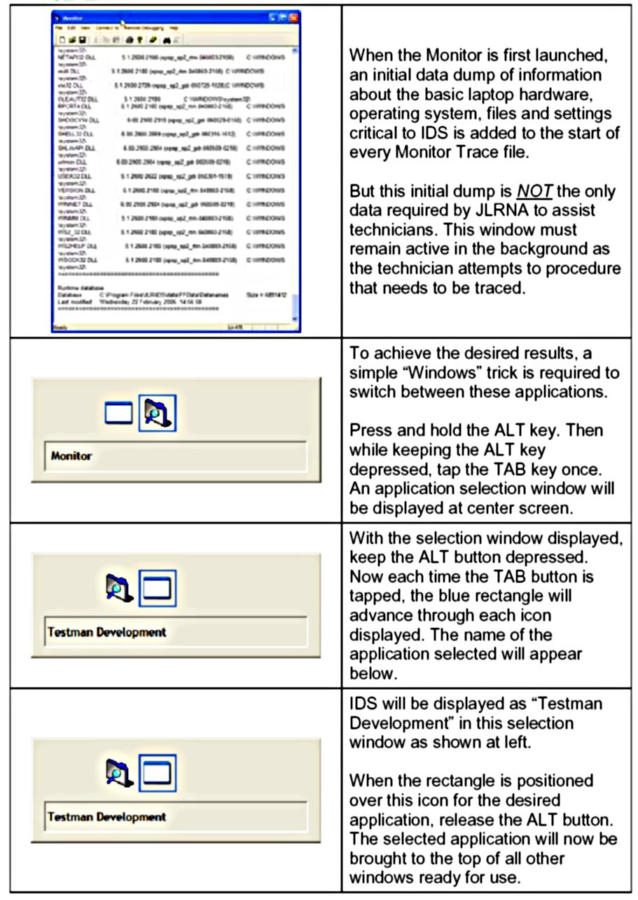 10. Currently, the only way to transfer IDS Monitor Trace files to JLRNA is via E-mail, be prepared to forward this file when requested.