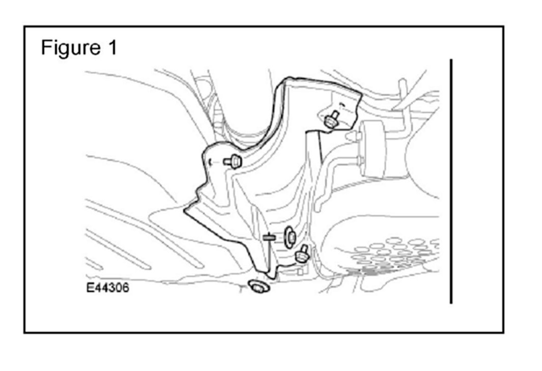 4. Remove the three bolts and two nuts securing the fuel tank heat shield (Figure 1).
