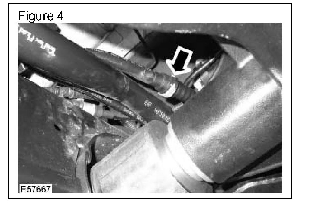 7. Disconnect the fuel tank vent line at the rear of the fuel tank, over the integrated body frame. (Figure 4)