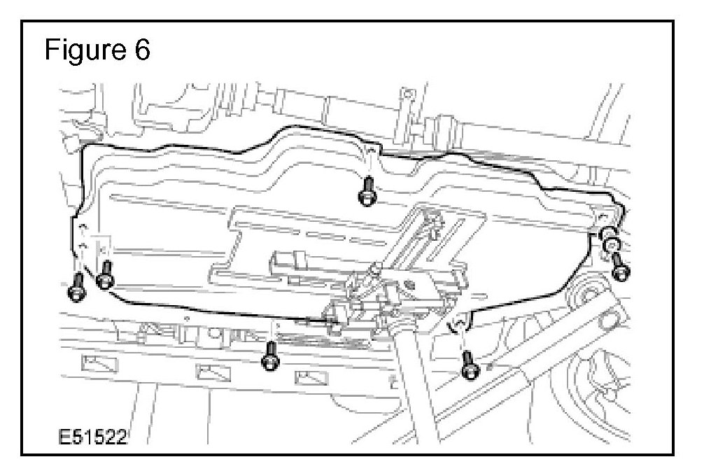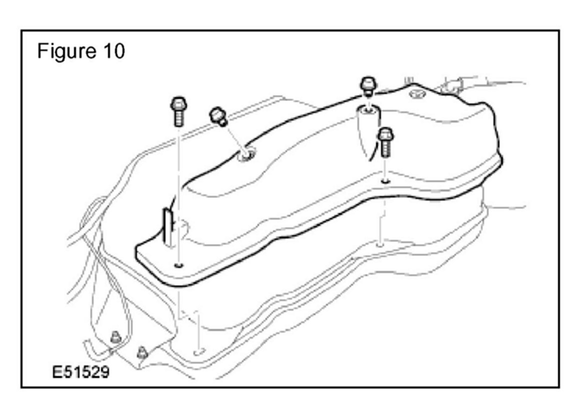 10. Secure the tank to a suitable transmission jack and remove the six fuel tank retaining bolts. (Figure 6)