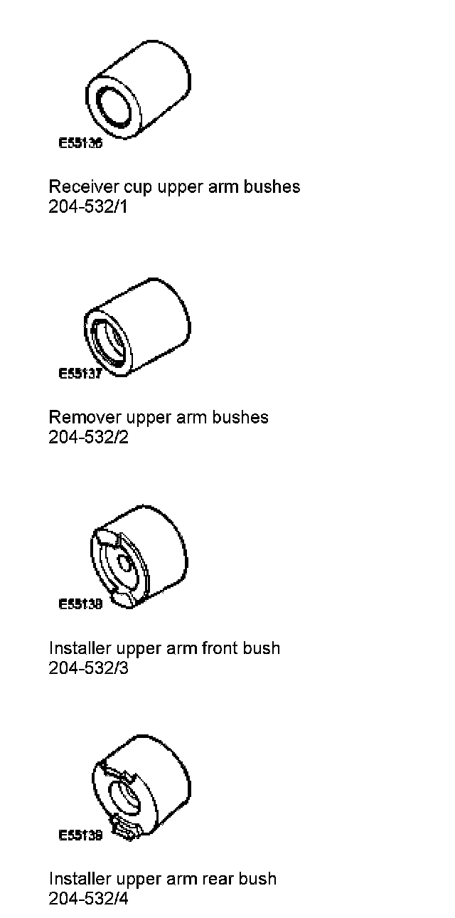 16. Using the special tools, remove and discard the upper arm bushings.