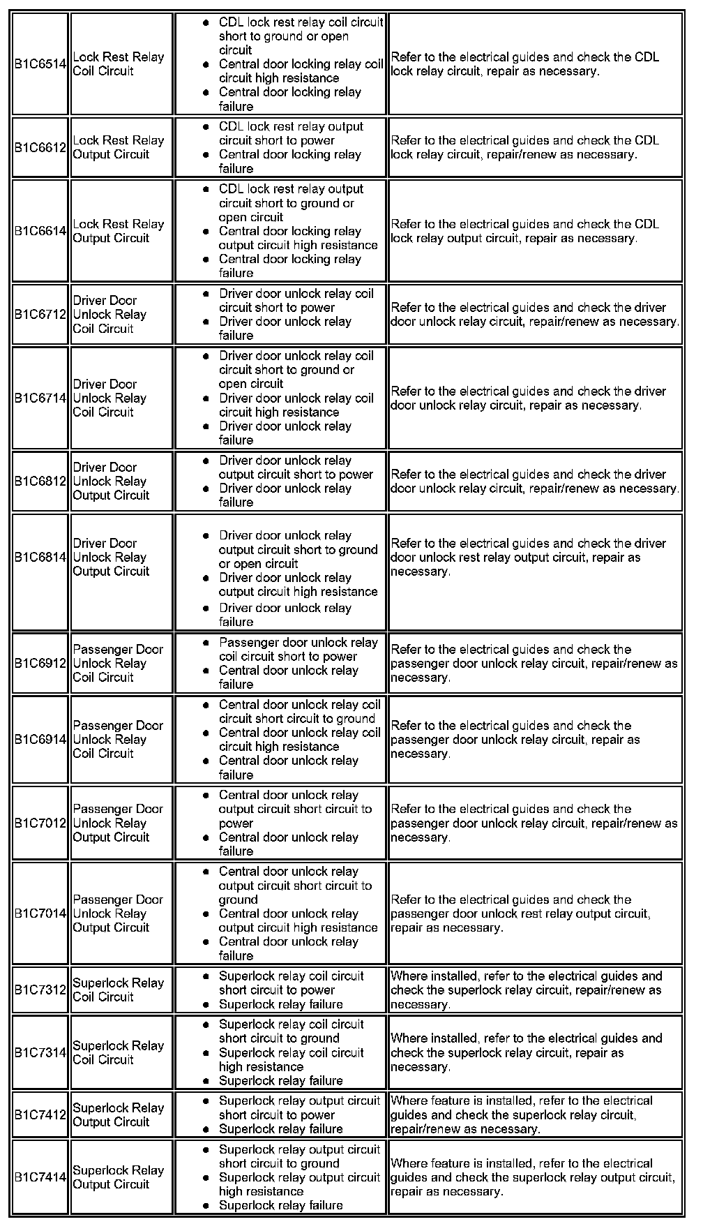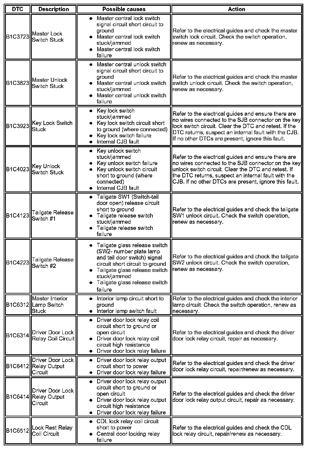 DTC Index (Power Locks)