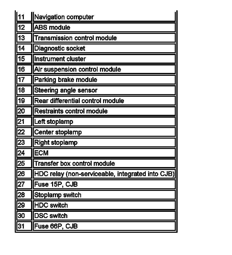 If fade out is invoked because of deselection or component failure, the HDC function is cancelled by the ABS module. If fade out is invoked because the accelerator pedal is pressed with the transmission in neutral, or because of brake overheat, the HDC function remains in standby and resumes operation when the accelerator pedal is released or the brakes have cooled.