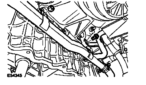 10. Release the transmission fluid lines. Position a container to collect the fluid spillage. Remove the bolt. Release the clip. Remove and discard both O-ring seals.