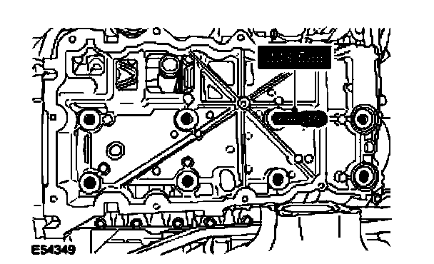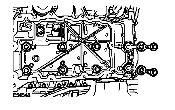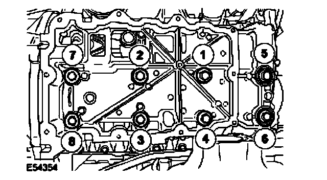 9. Install the 8 cylinder block cradle bolts and tighten in 2 stages.
