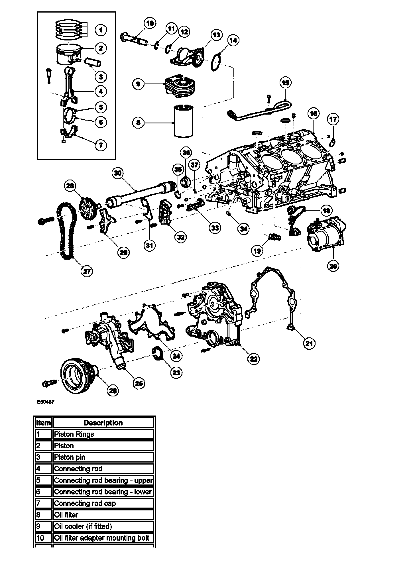 The filter adapter-mounting bolt locates in the cylinder block oil gallery and is sealed by an O-ring. The filter adapter houses the adapter bolt and is also sealed to the cylinder block by an O-ring.