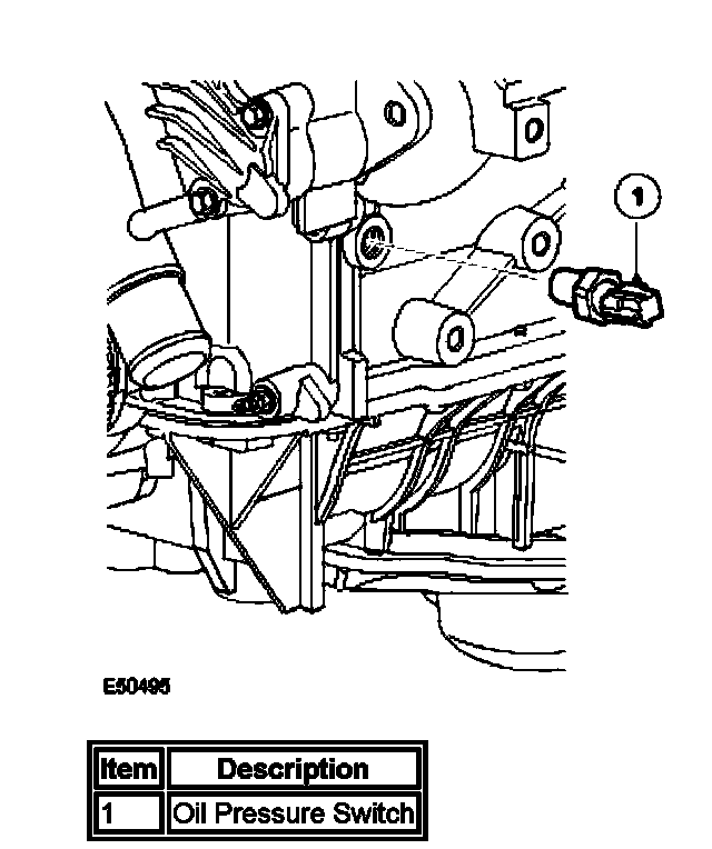 The oil pressure switch is located in a port at the front LH side of the cylinder block. It detects when a safe operating pressure has been reached during engine starting and initiates the illumination of a warning light in the instrument cluster if the oil pressure drops below a given value. The switch operates at a pressure of 0.15 to 0.41 bar (2.2 to 5.9 psi).