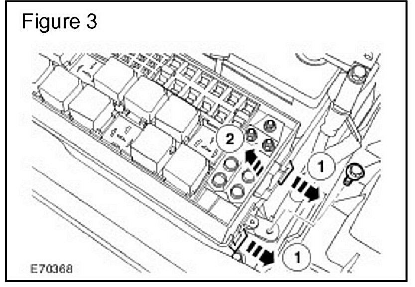 8. Release the retaining tangs securing the fuse terminal anti-backout panel to the battery junction box and remove the panel. (Figure 4)