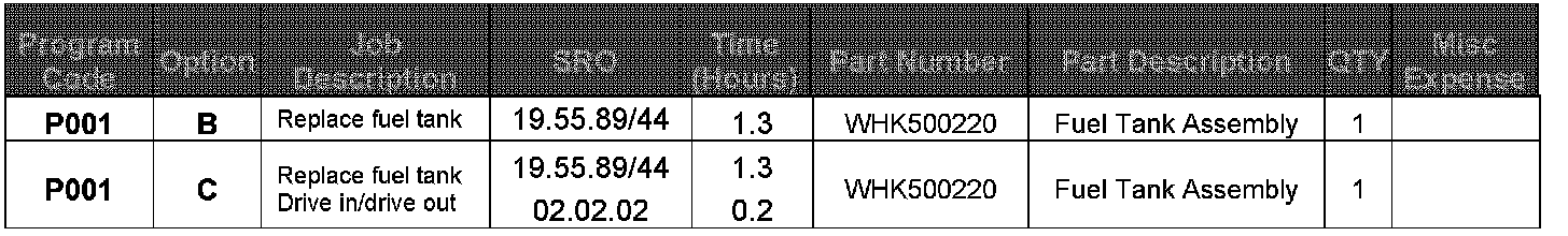Warranty claims should be submitted quoting program code P001 together with the appropriate option code. As option codes are used, there is no requirement to enter parts or labor. They are provided for information only.