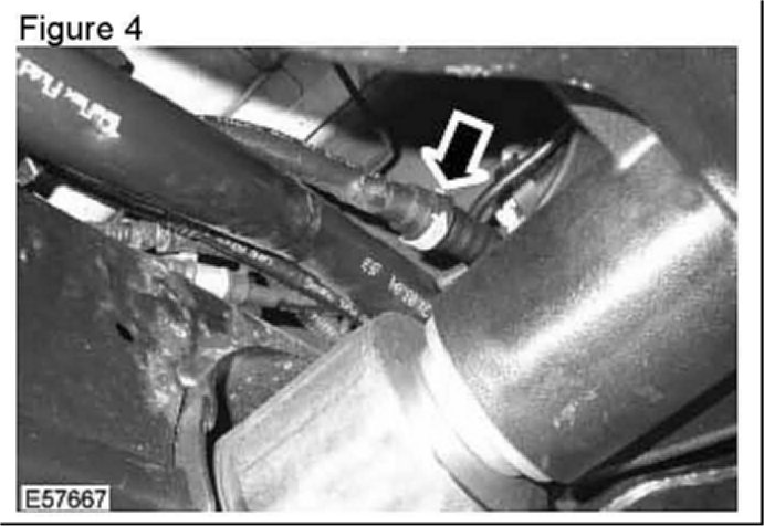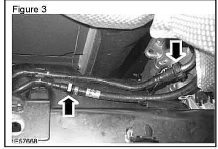 7. Disconnect the fuel tank vent line at the rear of the fuel tank, over the integrated body frame. (Figure 4)
