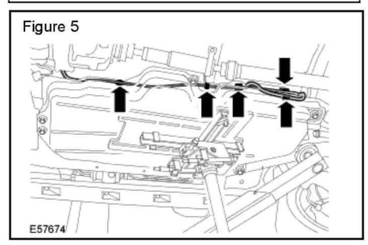 9. Release the parking brake emergency release cable and the two emergency release cable clips. (Figure 5)