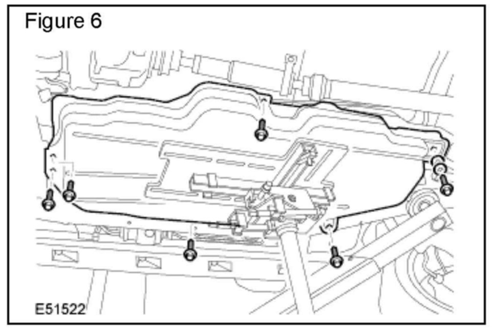10. Secure the tank to a suitable transmission jack and remove the six fuel tank retaining bolts. (Figure 6)