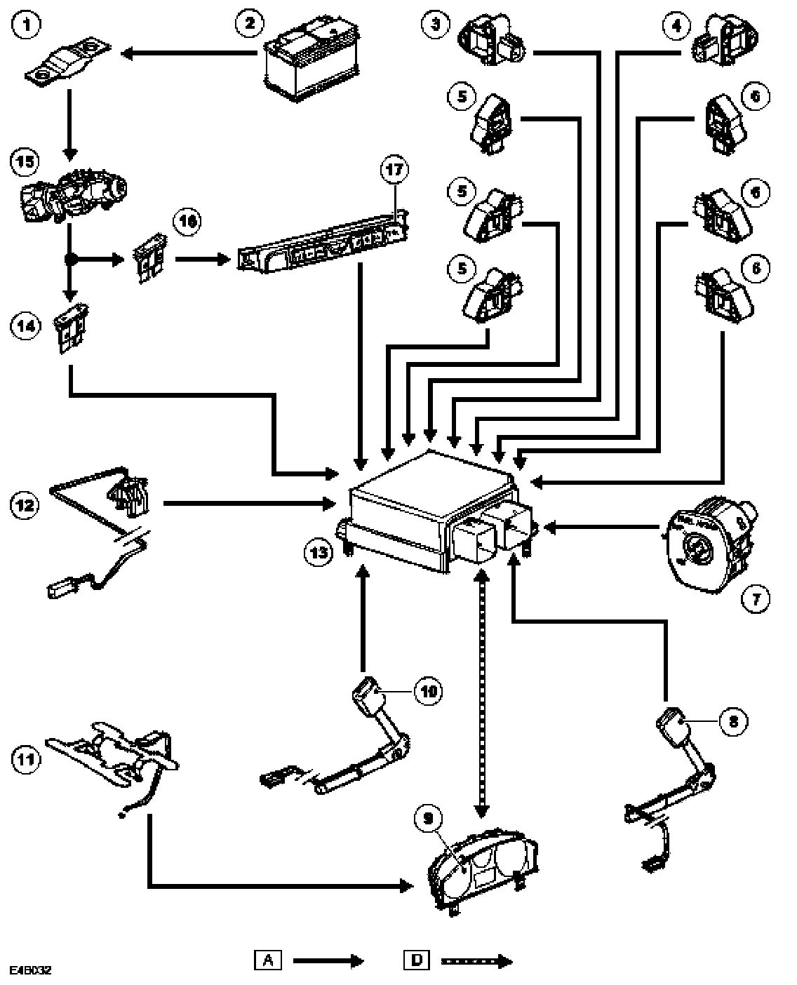 NOTE: A = Hardwired connections; D = High speed CAN bus.