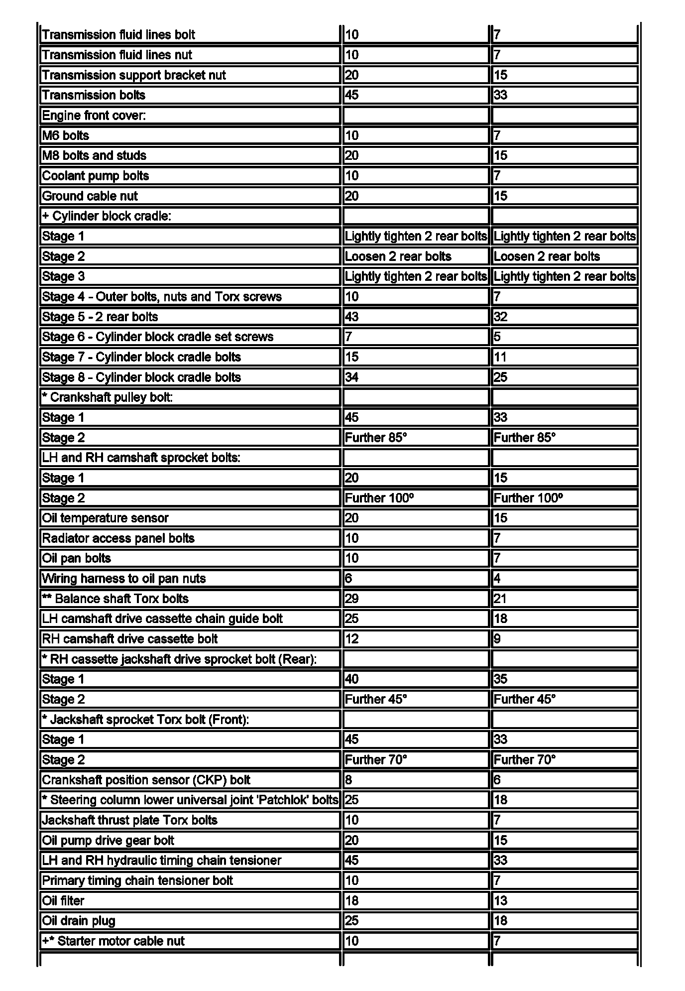 Torque Specifications