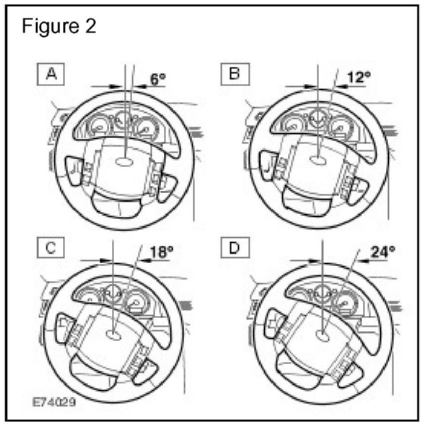 Steering wheel alignment is set during build and has a tolerance of + 3° as nominal. Road surfaces with excessive camber variation, road wheel curb strikes, or other accidental damage can lead to mis-diagnosis of steering wheel misalignment.