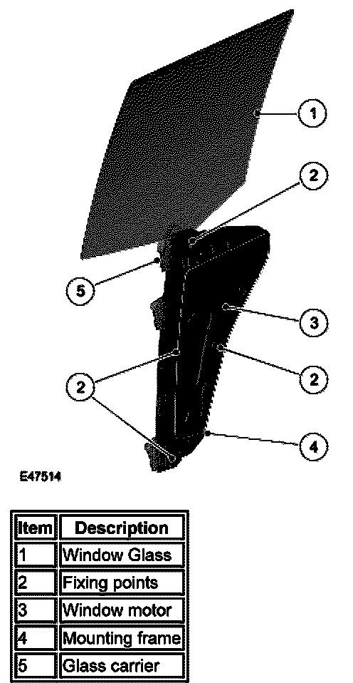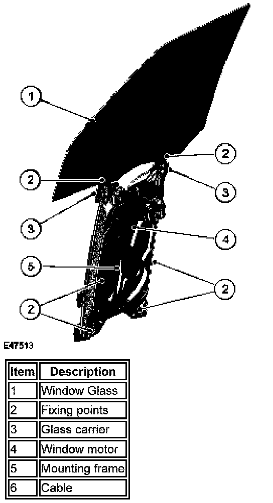 The front window regulator and motor is supplied as an assembly and is handed. Each assembly comprises a front and rear runner, a continuous cable and a motor.