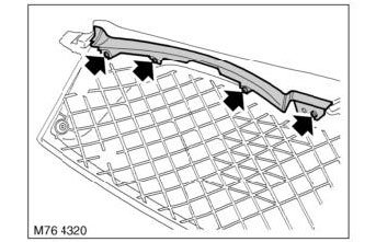 3. Carefully release clips securing center grille to top rail. Remove grille.
