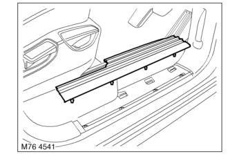 1. Using a trim removal tool, release 7 clips securing treadplate carpet retainer to sill.