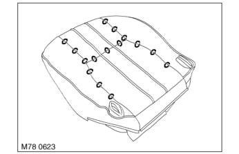 18. Release 2 retaining strips, securing both sides of lower squab cover to frame.