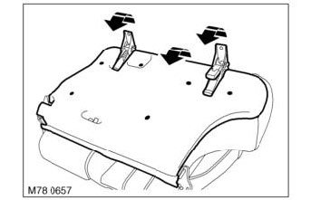 5. With assistance, push back both spring loaded seat hinges and remove finisher.