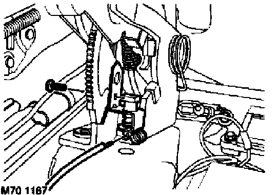 3. Release clip and disconnect handbrake cables from compensator.