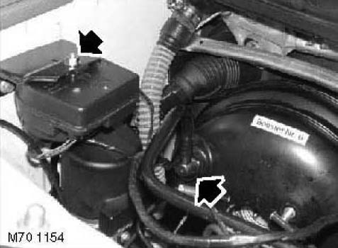 CAUTION: Nuts securing brake servo to pedal bracket must be re-torqued after 20 minutes have elapsed.
