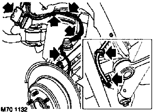 3. Secure sensor lead to suspension arm and suspension turret then connect and secure multiplug. Close cover on multiplug housing.