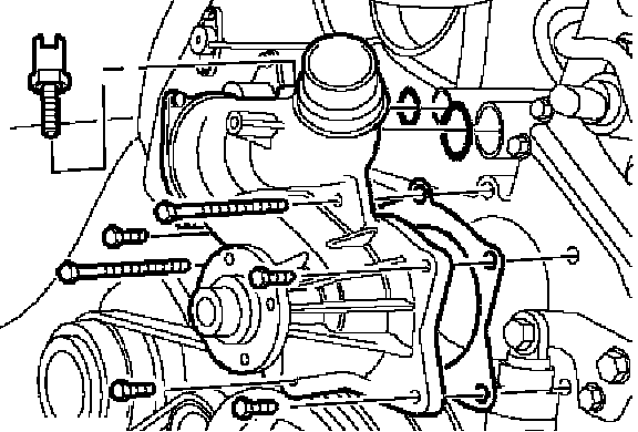14. Remove 6 bolts securing coolant pump to cylinder block and remove coolant pump.