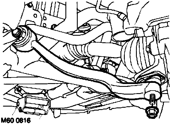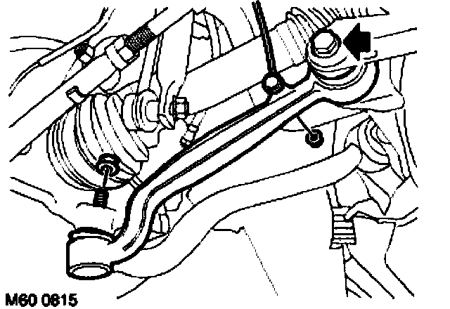 9. Loosen bolt securing lower arm to sub-frame one quarter of a turn.