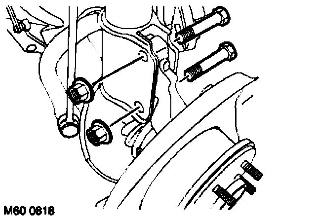 4. Position hub assembly and fit upper bolt, locate drive shaft to hub, align hub and fit lower bolt Tighten bolts securing hub to damper to 250 Nm (184 ft. lbs.).