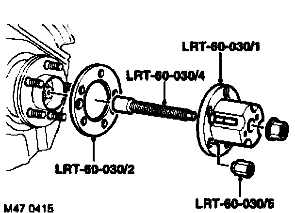 18. Fit center screw LRT-60-030/3 to LRT-60-030/1 and fit to hub with spacer LRT-60-030/2. Secure with nuts LRT-60030/5.
