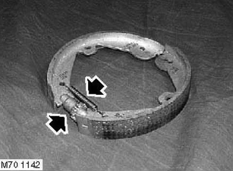 8. Remove brake shoe assembly complete with lower spring and adjuster.