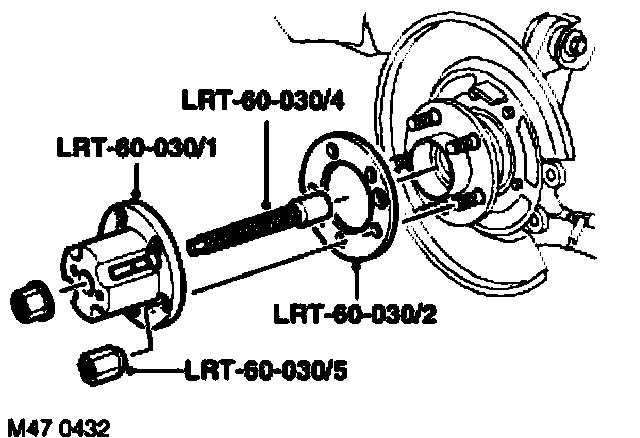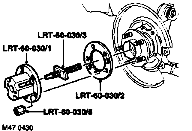 16. Fit center screw LRT-60-030/3 to LRT-60-030/1 and fit to hub with spacer LRT-60-030/2. Secure with nuts LRT-60030/5.